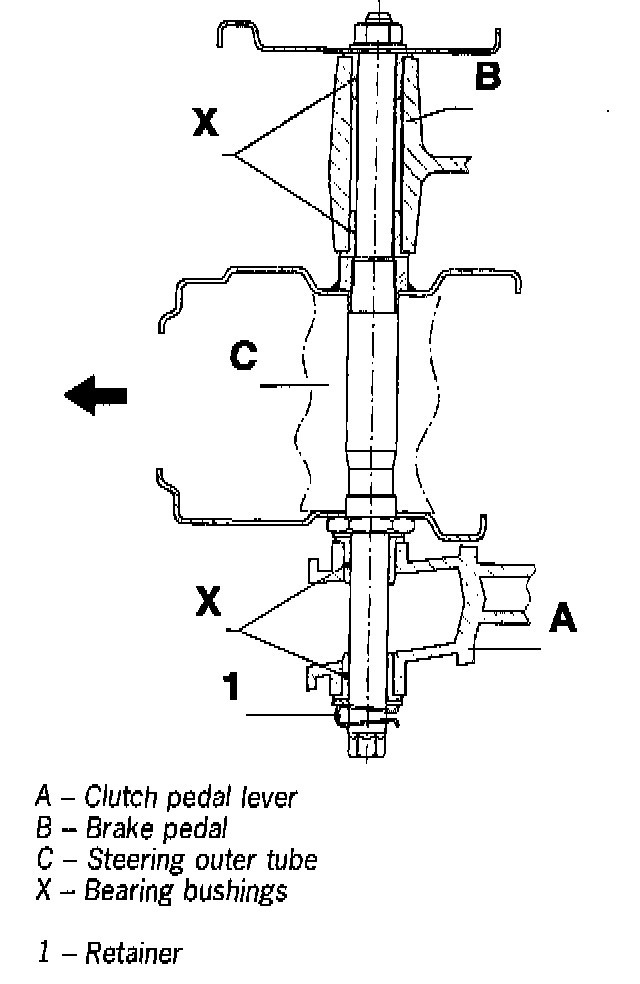 On right-hand drive vehicles, the clutch pedal lever is located directly next to the brake pedal (separated by the steering outer tube in the case of left-hand drive vehicles). Assembly/disassembly for right-hand drive vehicles is similar to the procedure for left-hand drive vehicles.