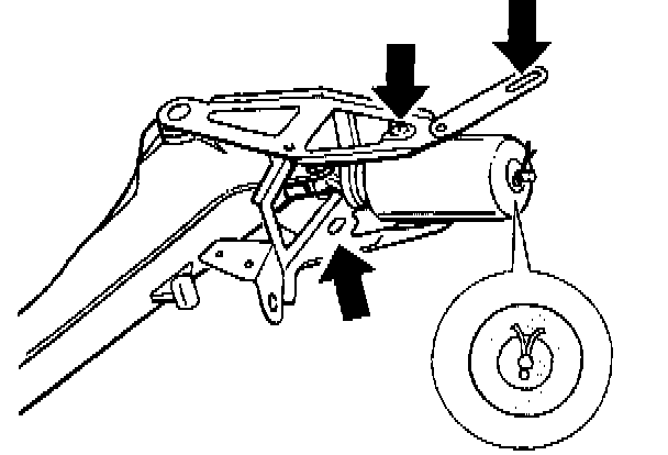 - Pedal bearing axle with different fastening method >arrows< (clamping of the steering outer tube and fixing of the pedal-bearing axle)