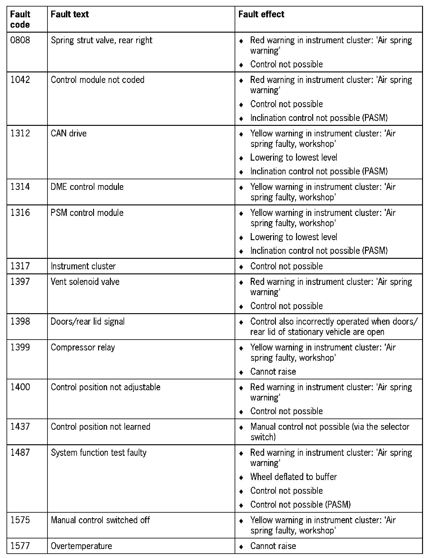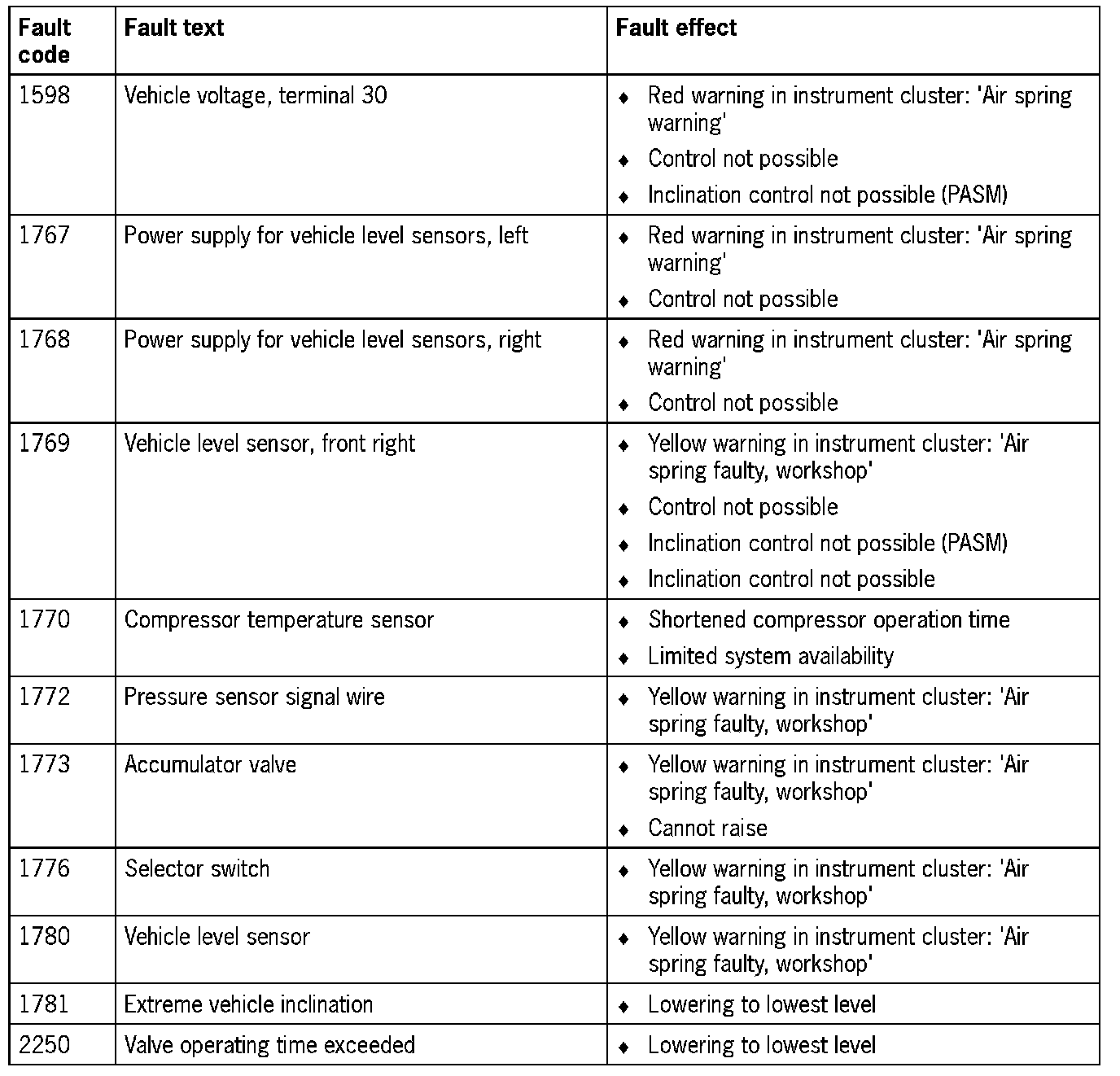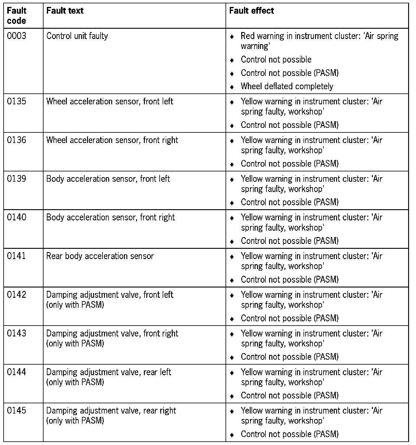 NOTE: If the fault code 0003 'Control unit faulty' is displayed in the 9588 Porsche System Tester II but the red warning 'Air spring warning' in the instrument cluster does not appear, the fault can be erased.