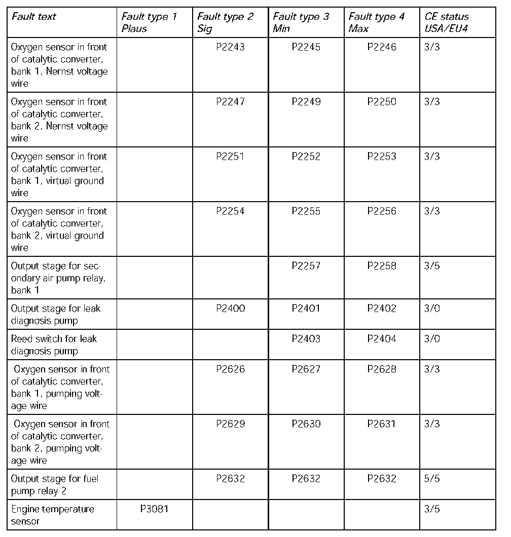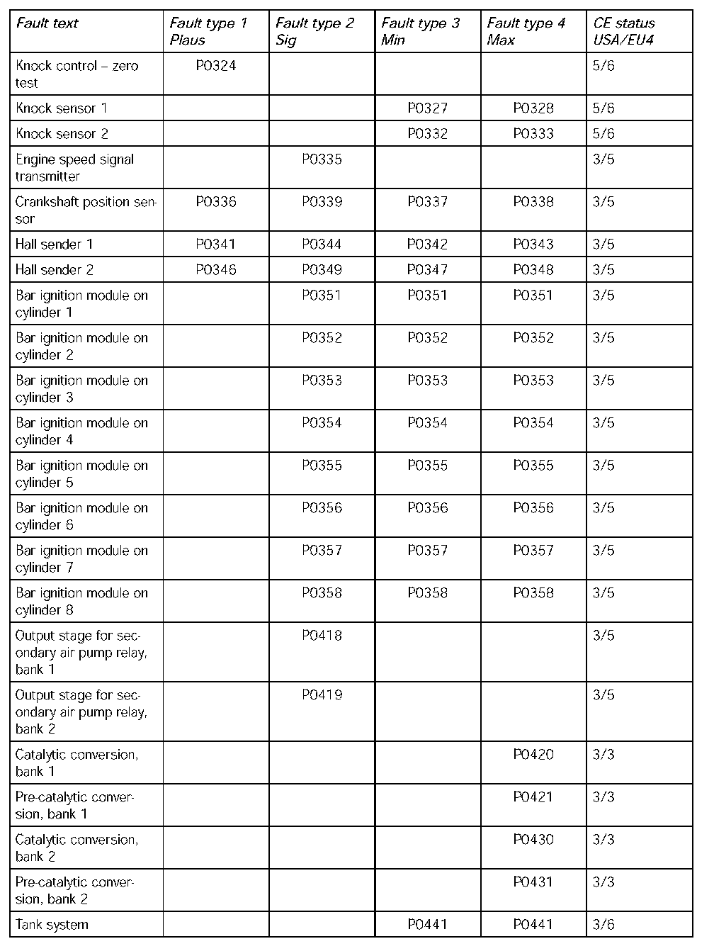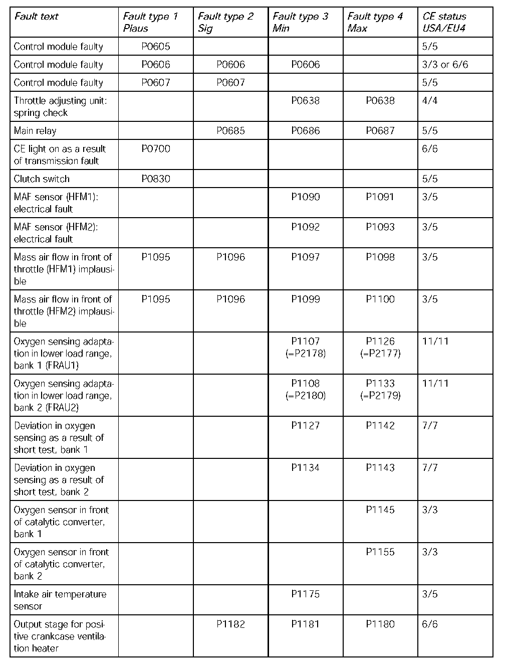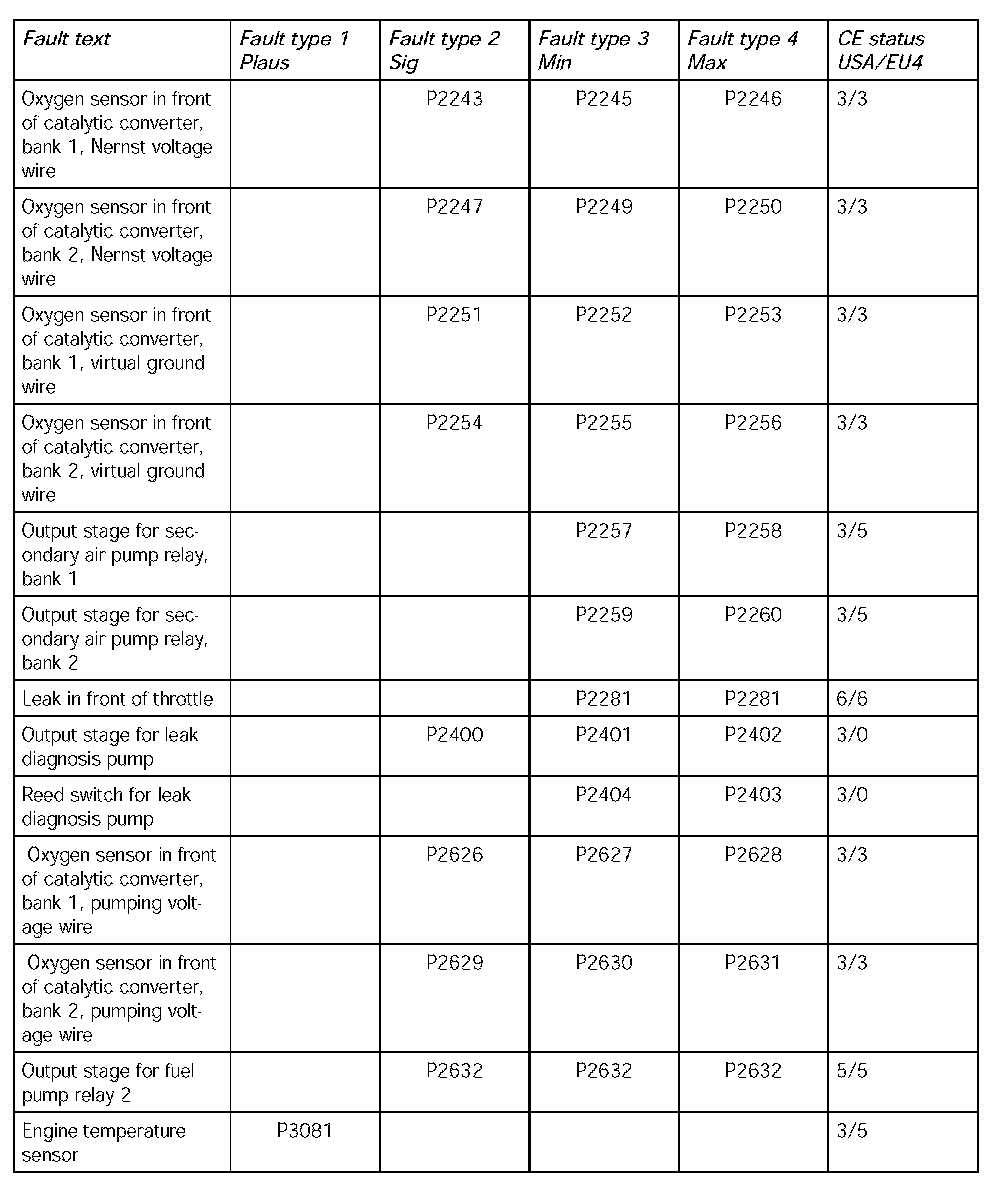- The following table contains the fault codes for the DME 7.1.1 in V8 naturally aspirated and turbocharged engines and in V6 naturally aspirated engines in the USA. It also includes the codes for countries adhering to the EU4 emission standard and rest of the world countries.