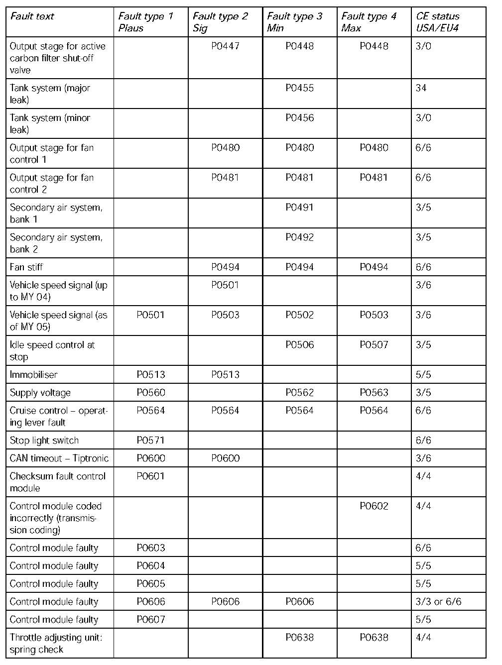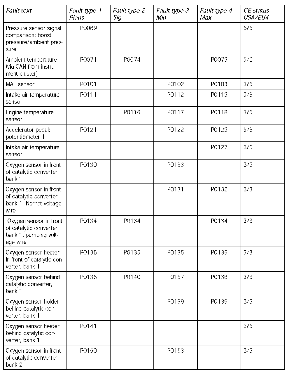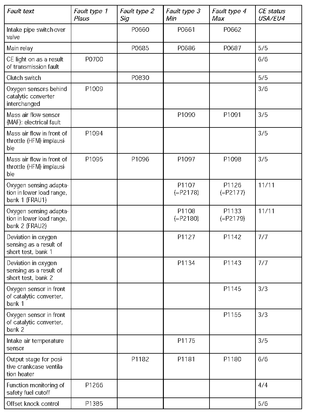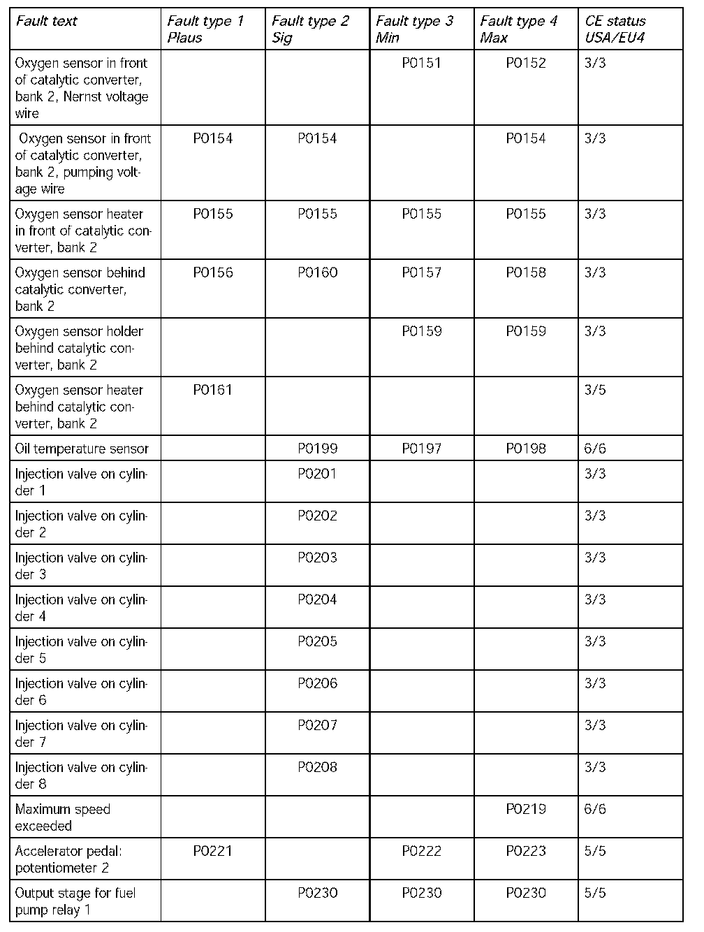 - The following table contains the fault codes for the DME 7.1.1 in V8 naturally aspirated and turbocharged engines and in V6 naturally aspirated engines in the USA. It also includes the codes for countries adhering to the EU4 emission standard and rest of the world countries.