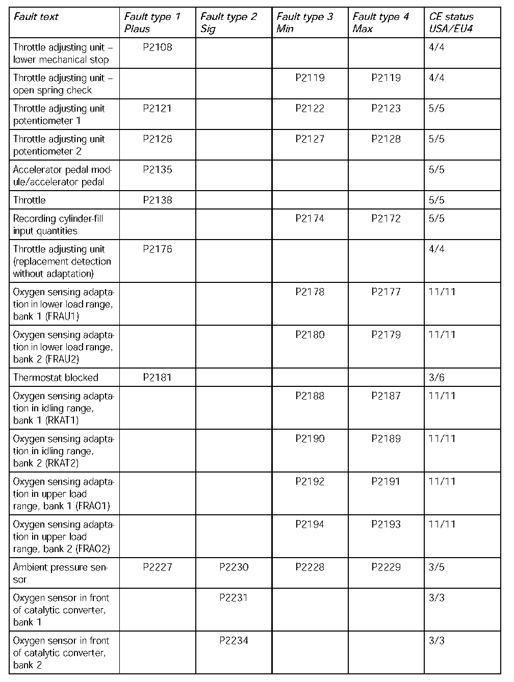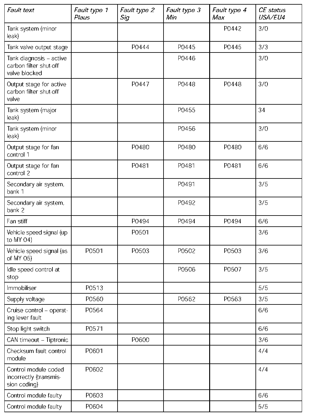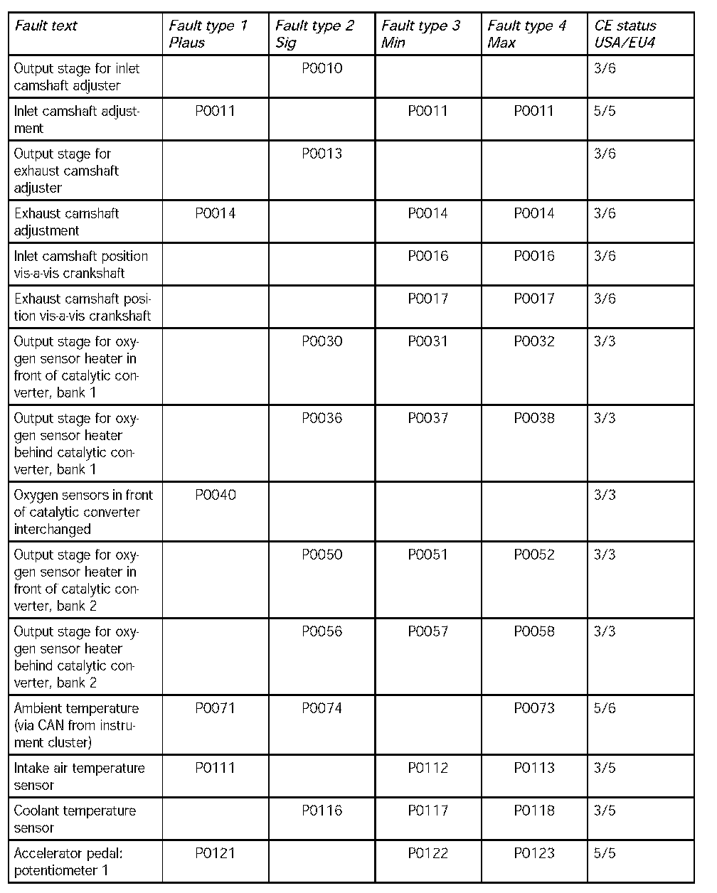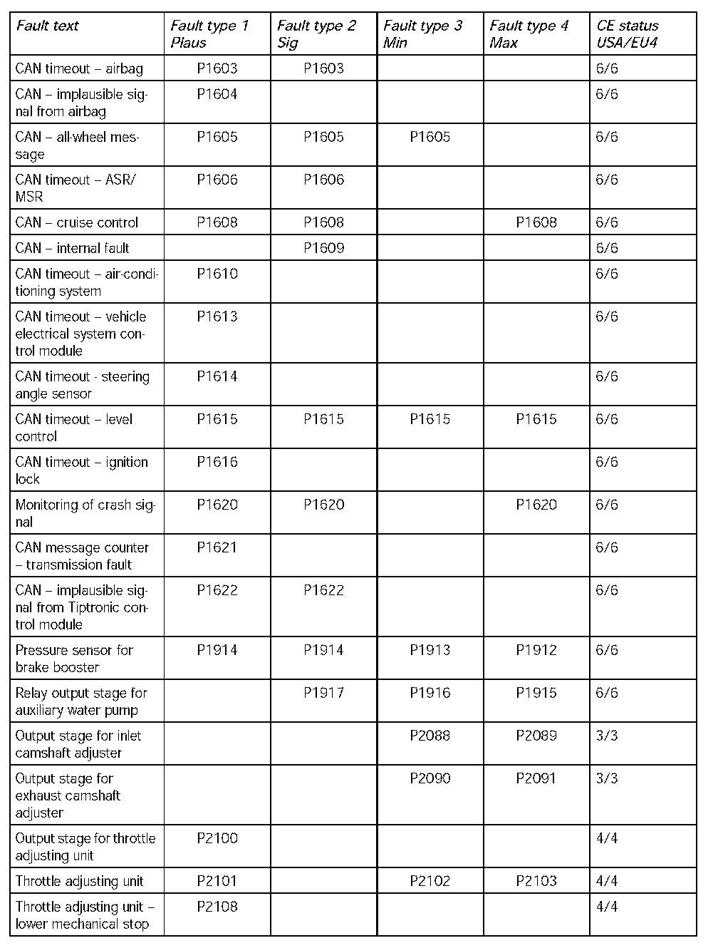 - The following table contains the fault codes for the DME 7.1.1 in V8 naturally aspirated and turbocharged engines and in V6 naturally aspirated engines in the USA. It also includes the codes for countries adhering to the EU4 emission standard and rest of the world countries.