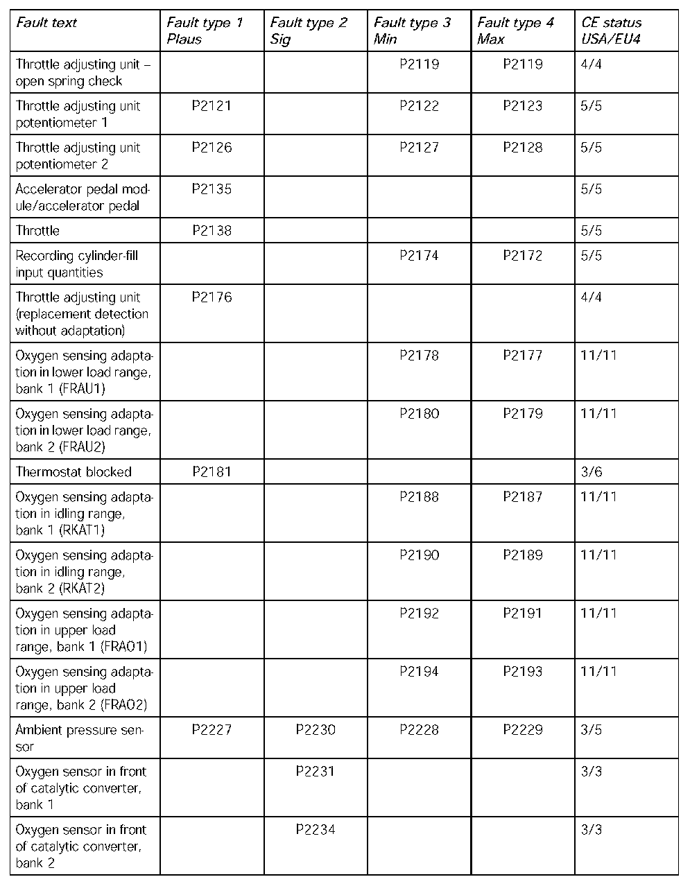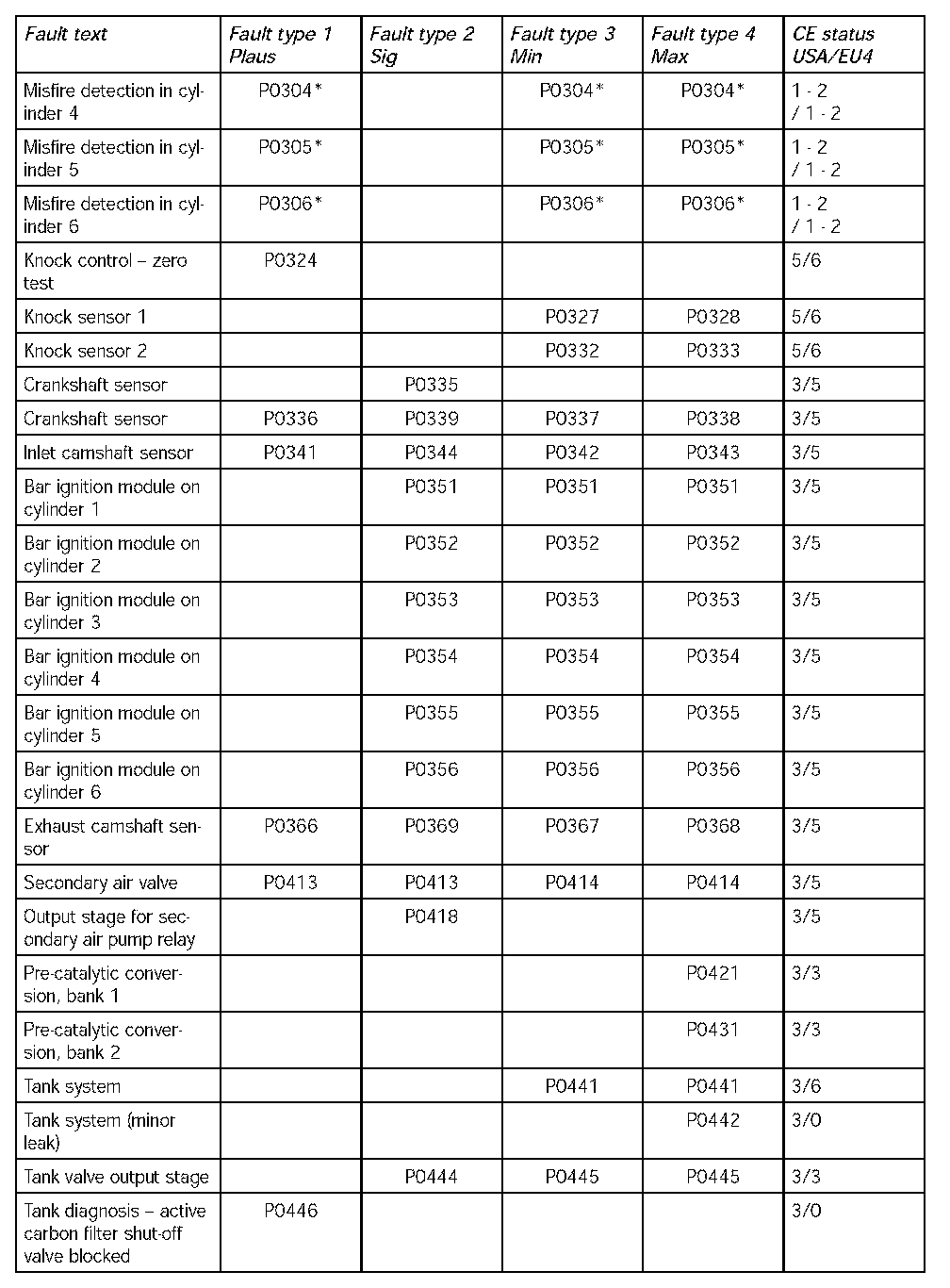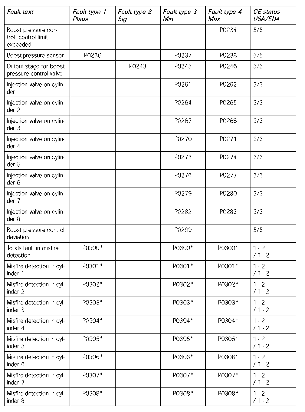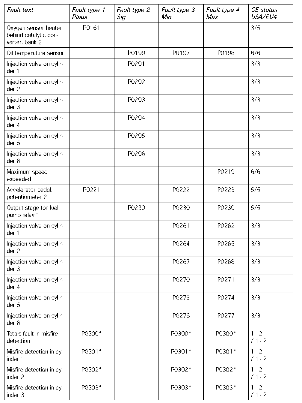 *: The fault types have a different meaning in the case of misfire faults.