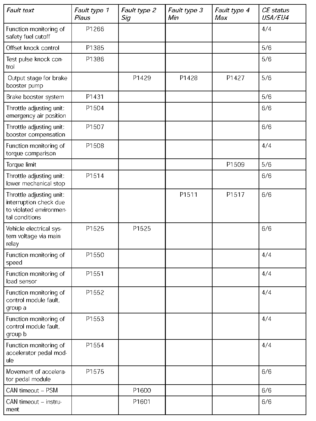 Fault type 1: Signal implausible/implausible operating range/malfunction (Plaus)