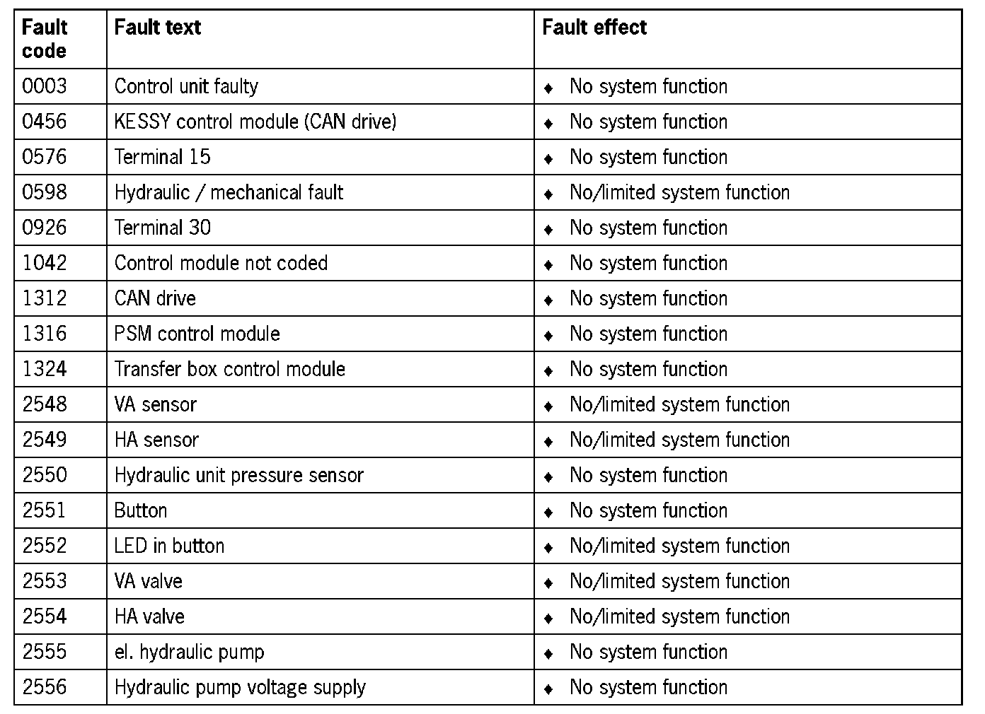 Fault Overview - Offroad Stabilizers