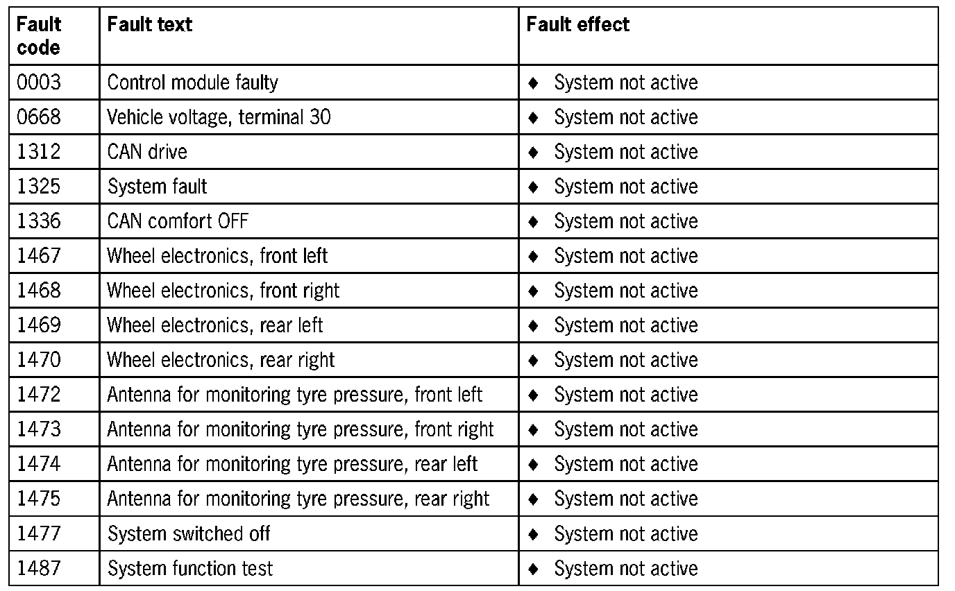 Fault Overview - Tire Pressure Monitoring System