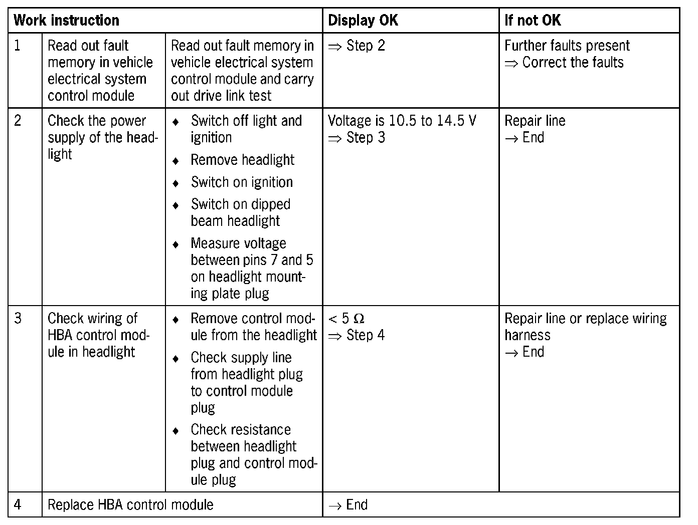 Coding: Make sure that the headlight system is coded correctly in the vehicle electrical system control module (always code Xenon headlights as well).