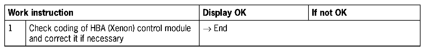 - Internal HBA (Xenon) control module function test (once ignition and dipped beam headlight are on, a reference run is performed: headlight swivels up, down and slightly up again)