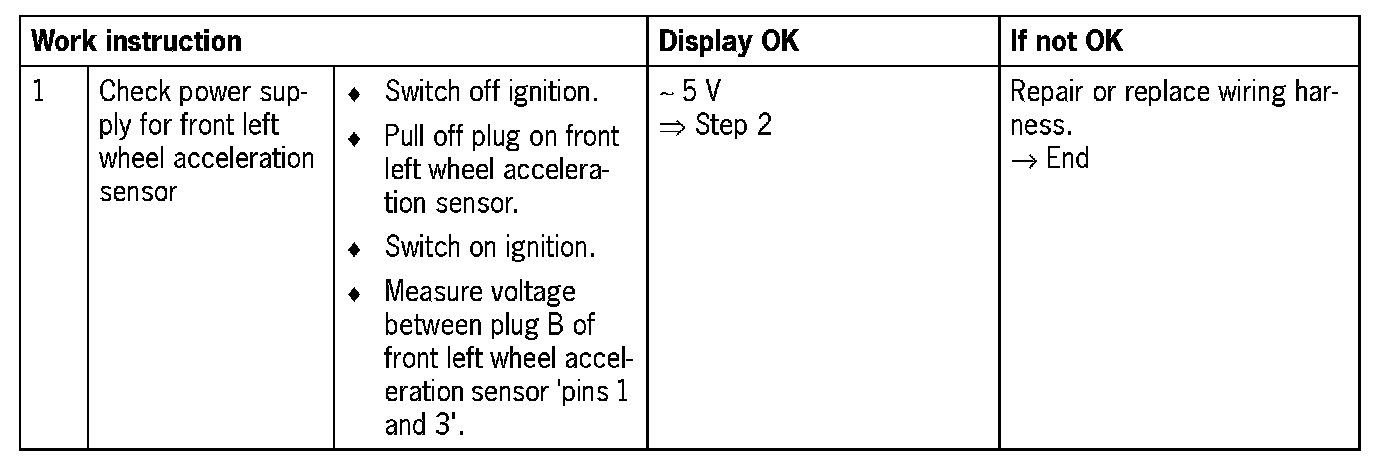 Fault code 0135Wheel acceleration sensor, front left