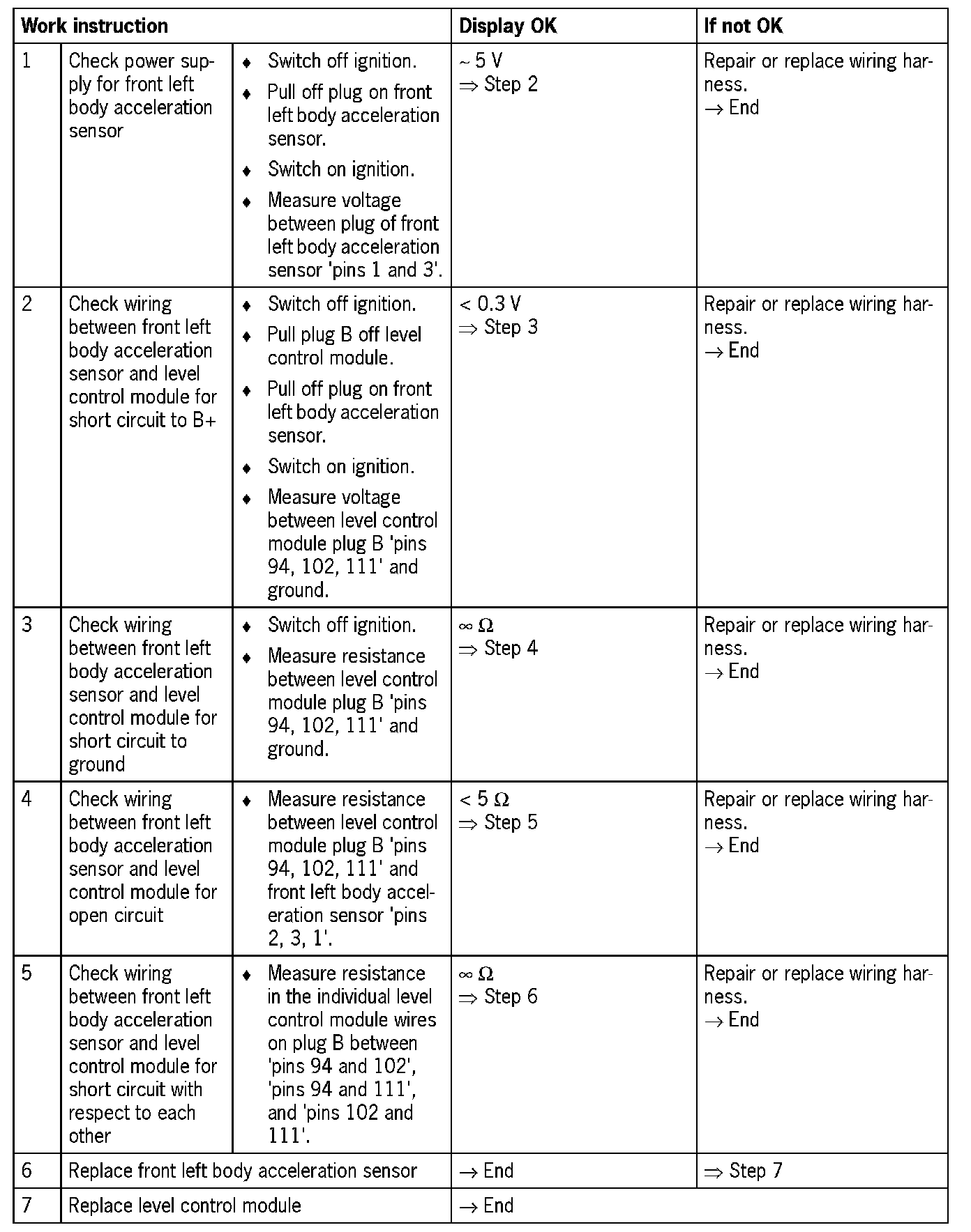 - Level control module receives implausible signal from body acceleration sensor