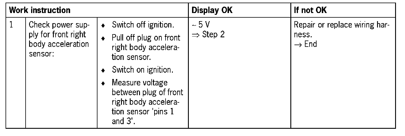 - Level control module receives implausible signal from body acceleration sensor