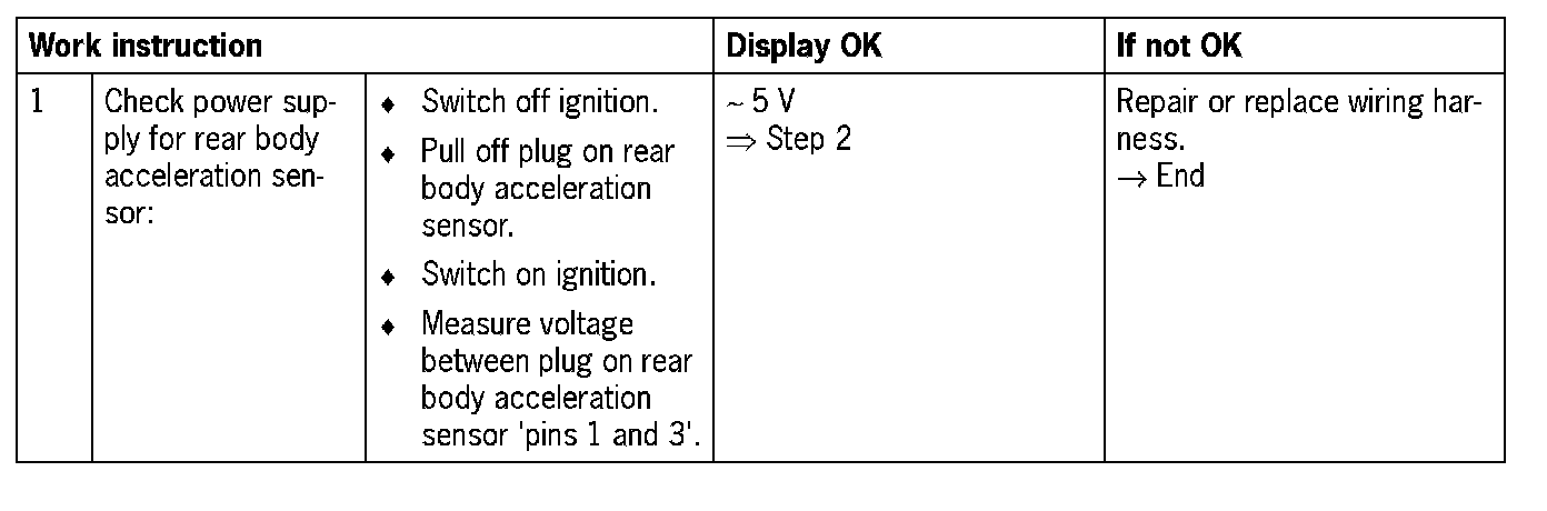 - Level control module receives implausible signal from body acceleration sensor