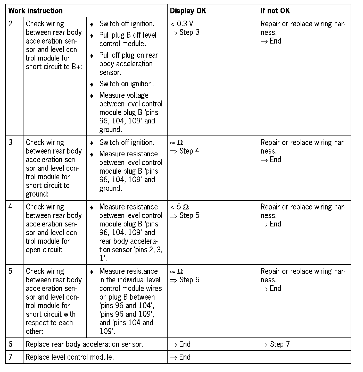 - Open circuit in the wiring of pin 96 of the level control module