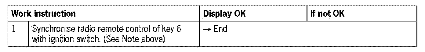 - Key 6 is not synchronised with the electronic ignition switch