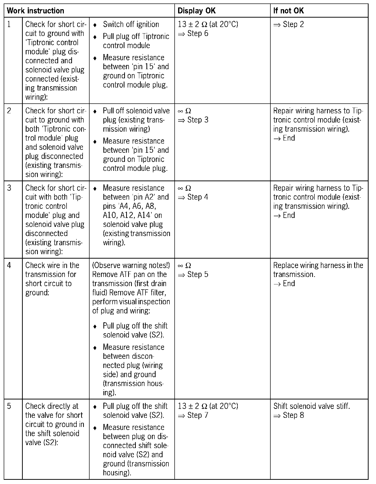 - 1. 'Open circuit/short circuit to B+': An open circuit prevents activation of the shift solenoid valve (S2)