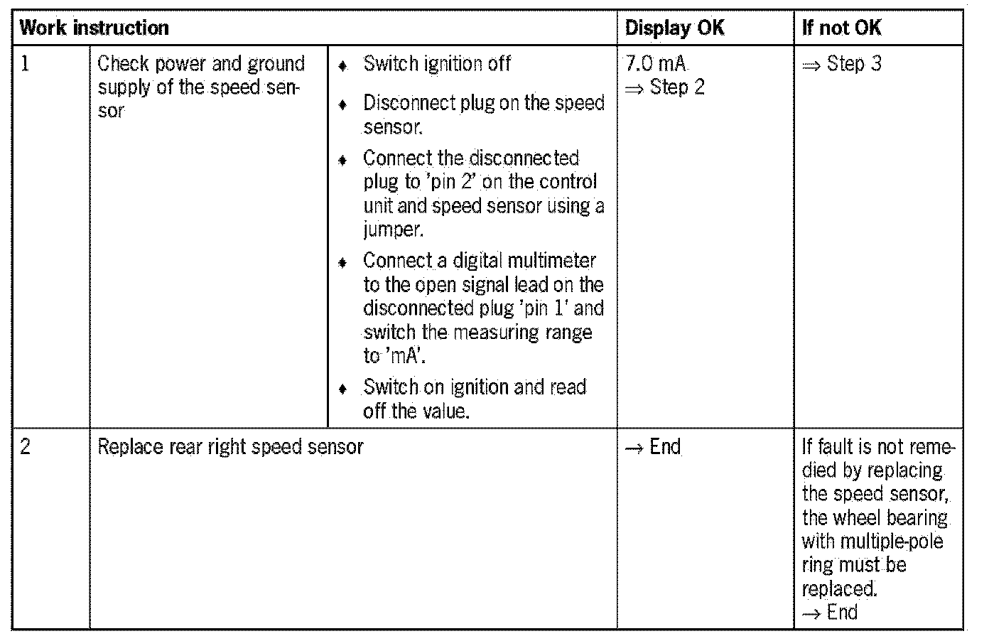 - Incorrect signal/speed sensor faulty/wheel bearing was mounted incorrectly (implausible signal from speed sensor or the magnetic strength of magnetic plates integrated in the multiple-pole ring is significantly reduced)