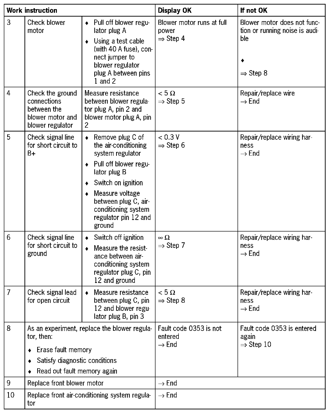 Fault code 0353Feedback signal from front blower regulator