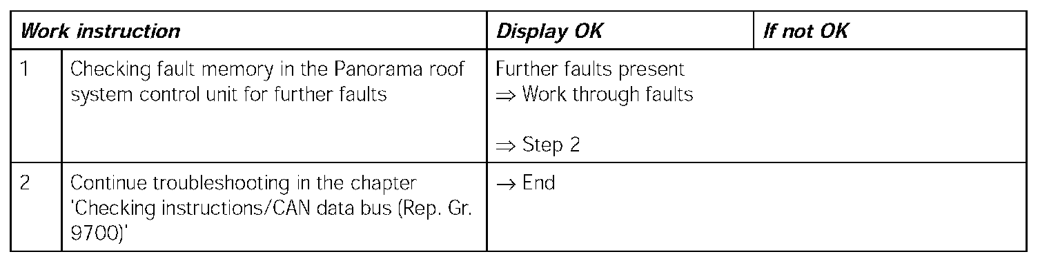 - Panorama roof system (PDS) control unit, internal function test