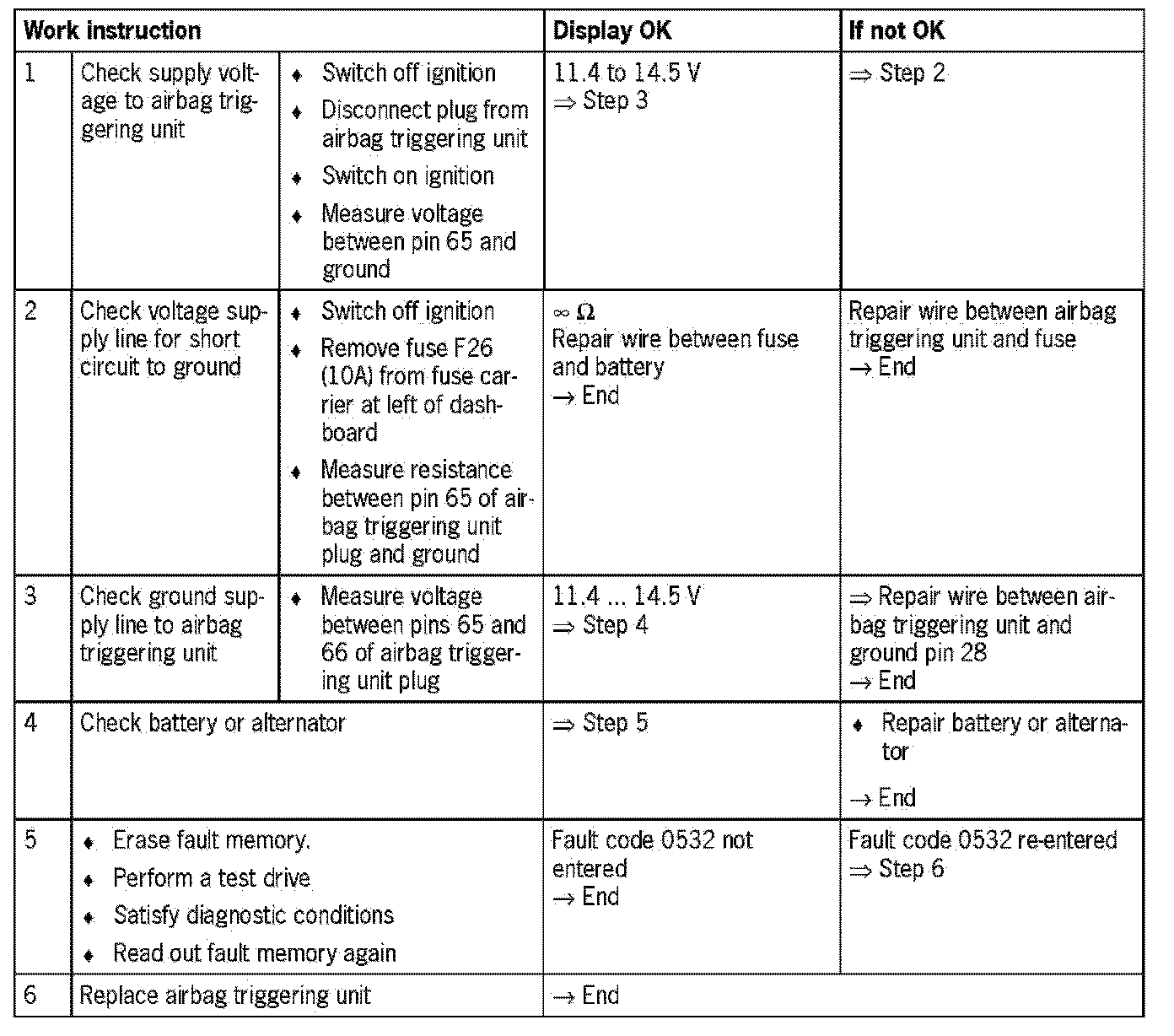 - Airbag triggering unit: Pin 66