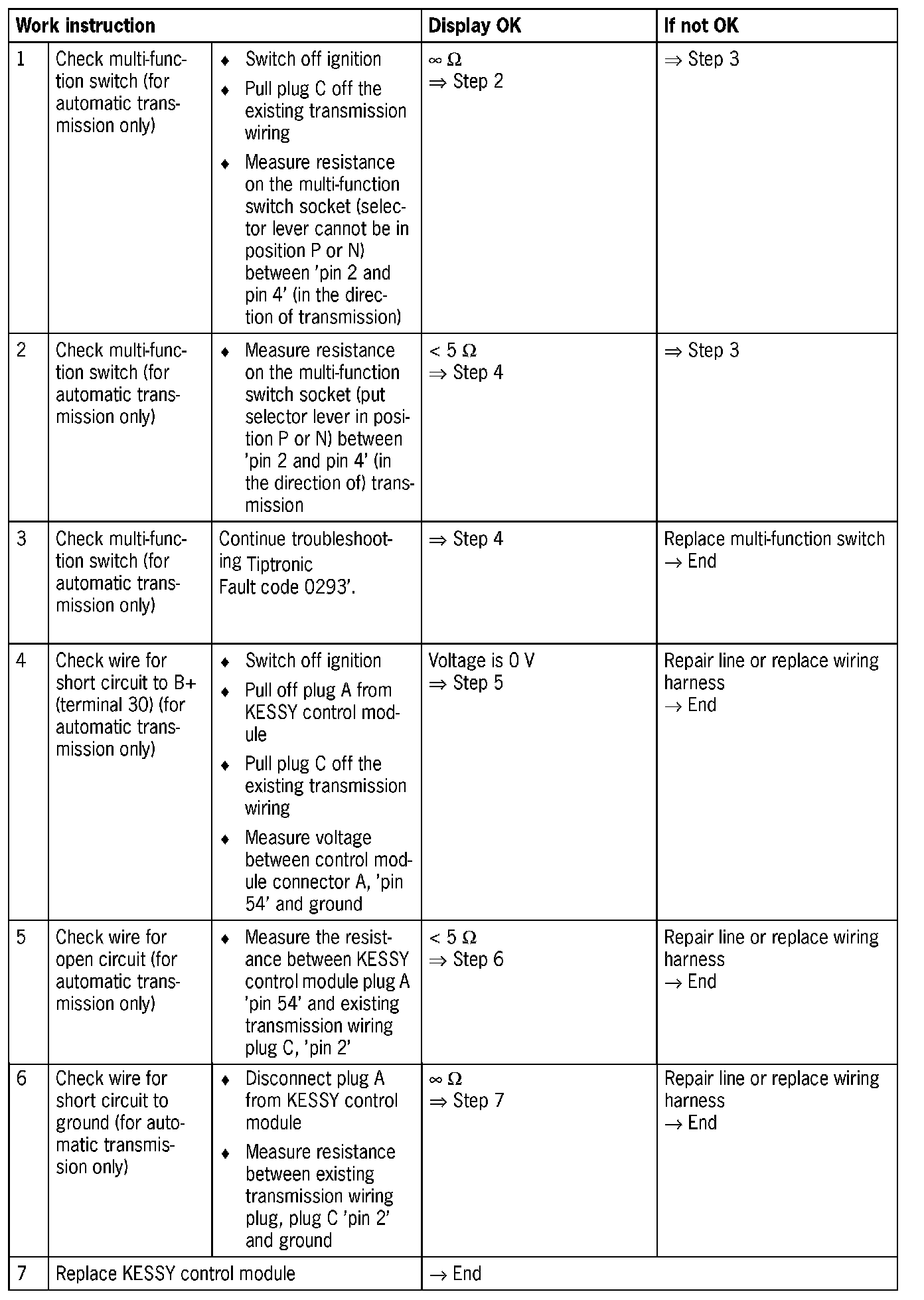- Visual inspection: In the next troubleshooting section, please check first that the affected pins on the KESSY control module plug connection are neither damaged nor corroded. The wiring and plugs of the affected components must also be checked for external damage and correct contacts. Repair damaged or corroded pins if possible, otherwise replace affected pins. Repair or replace damaged wires.