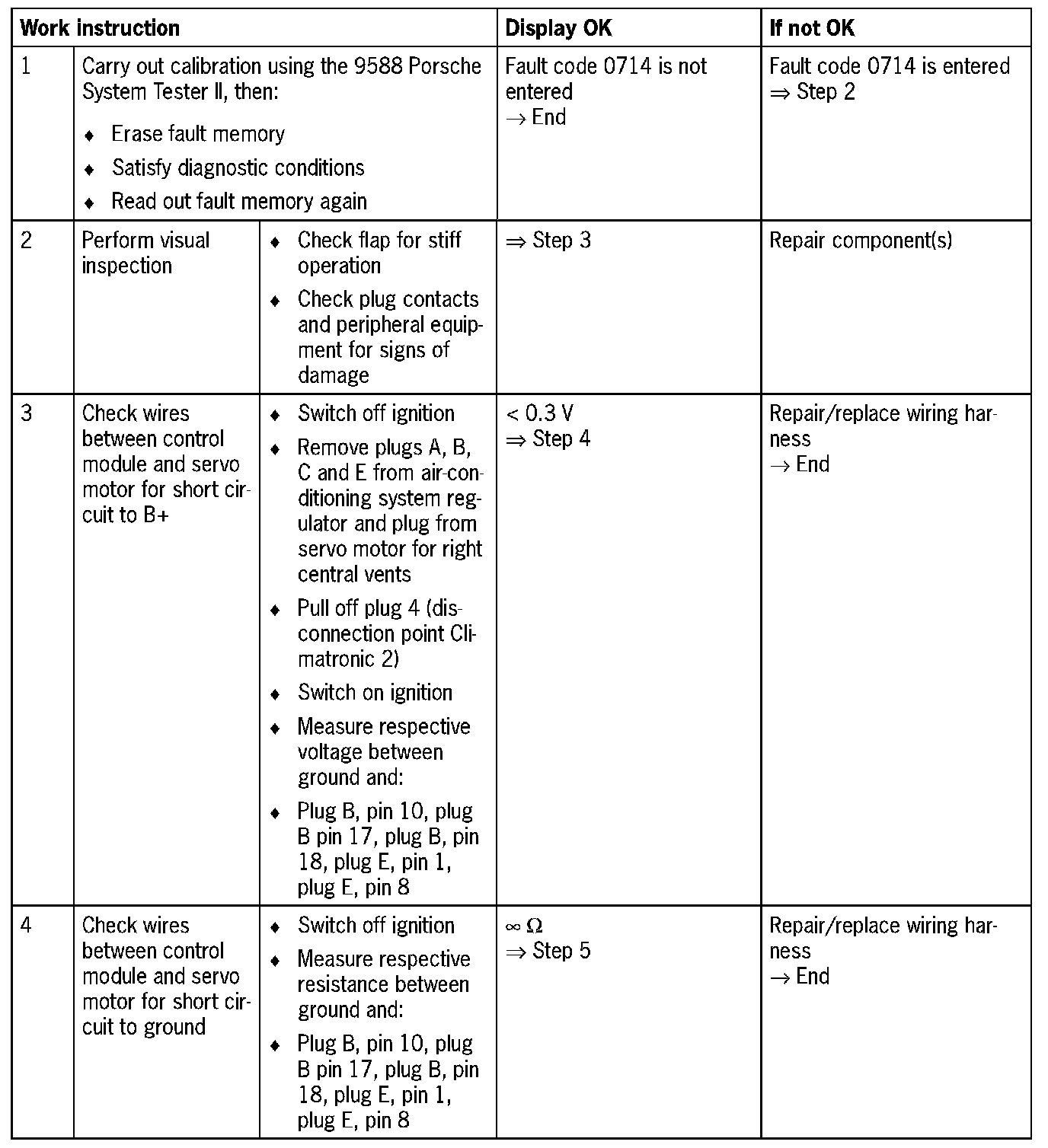 Fault code 0714Servo motor for right central vents