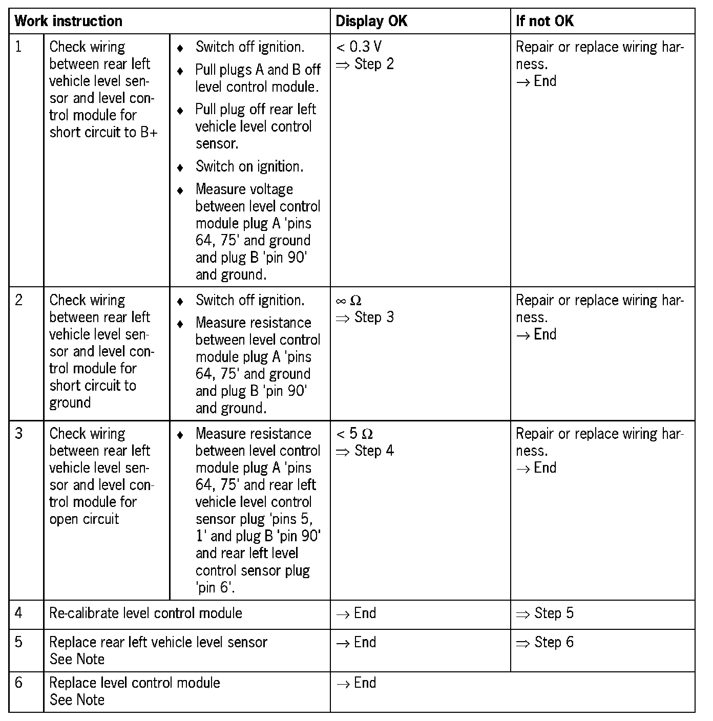 - Open circuit in one or more wires connected to pins 90, 75 and 64 of the level control module (electrical fault in electric circuit)