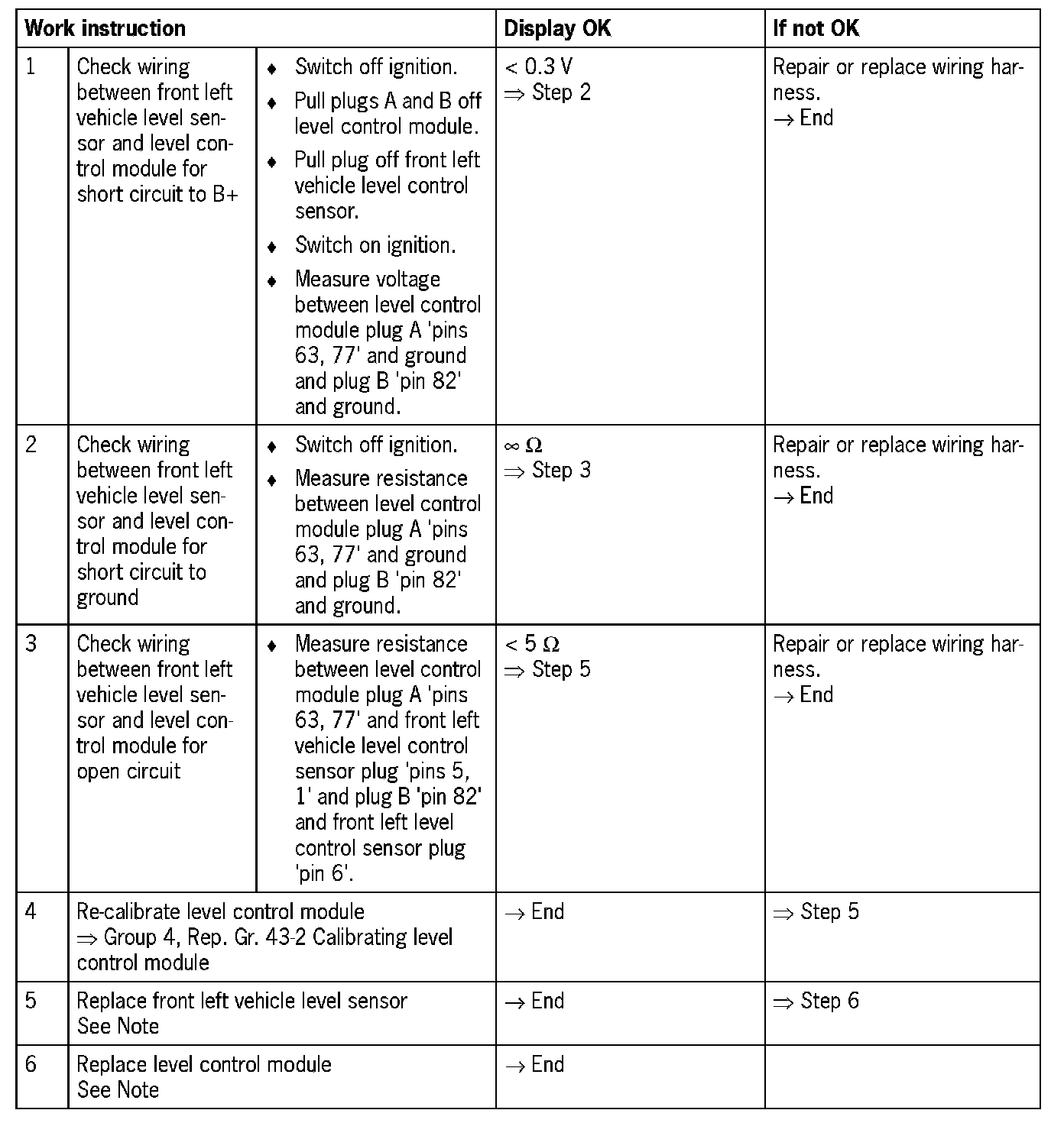 - If implausible signal is received from vehicle level sensor, perform calibration --> Group 4 - Running gear (Rep. Gr. 43-2)