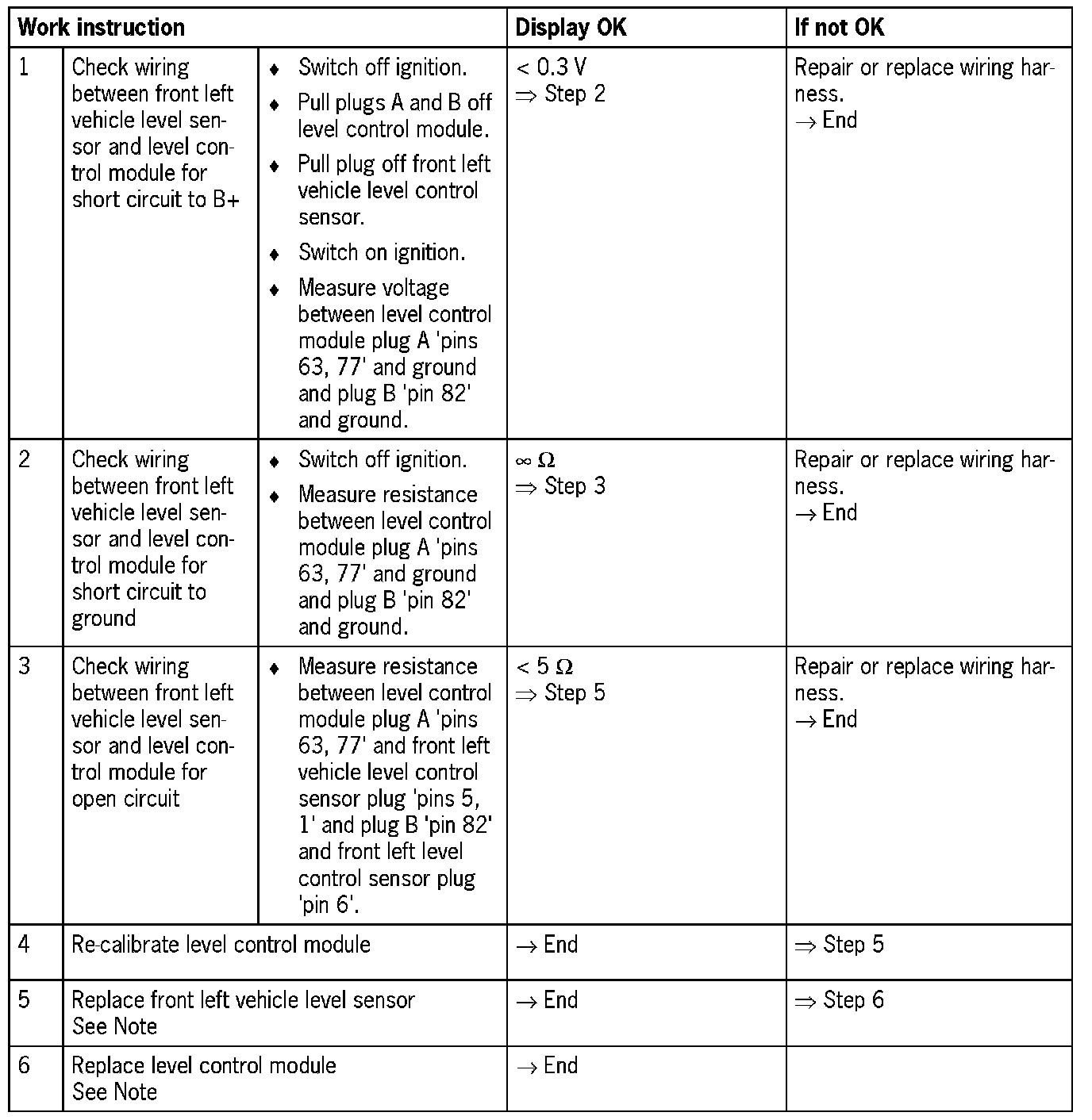 - Open circuit in one or more wires connected to pins 63, 77 and 82 of the level control module (electrical fault in electric circuit)