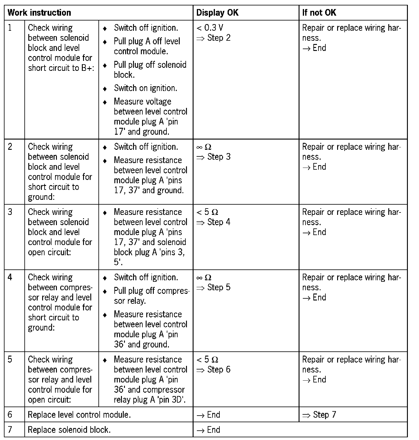 - Short circuit to ground in the wiring of pin 17 of the level control module