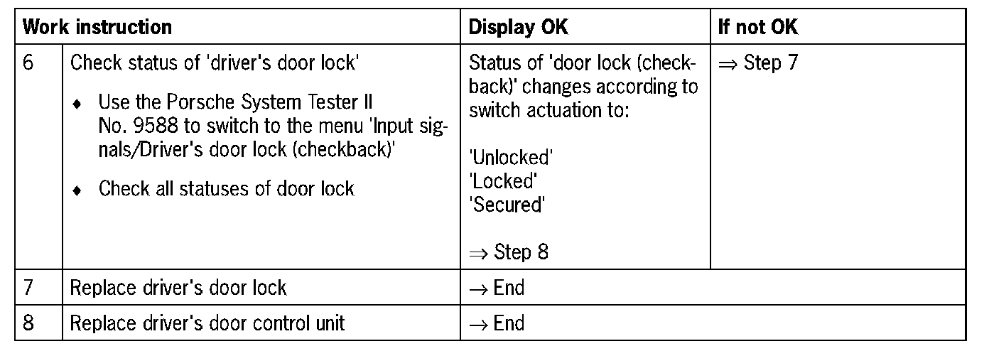 - Internal function test on driver's door control unit