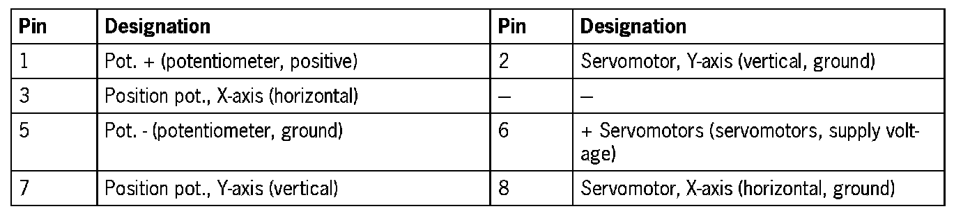 - Pin 1 'adjustment motor X/Y'