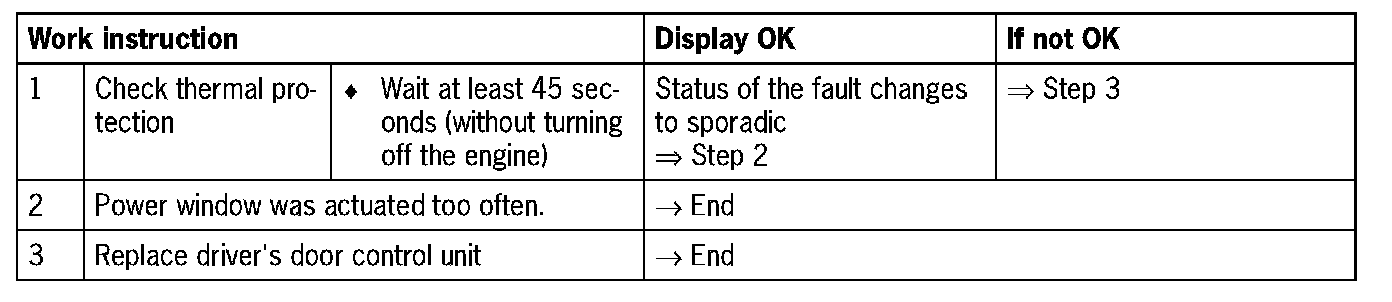 Fault code 1034Thermal protection for driver's power window