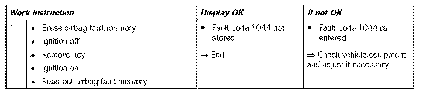 NOTE: The fault is entered if the coding/locking of the airbag triggering unit does not correspond to the vehicle's equipment.