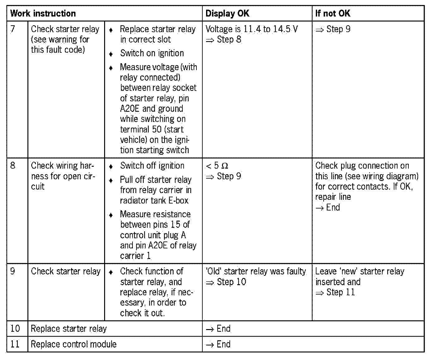 - Starter relay in relay carrier in radiator tank E-box: Pin A20E
