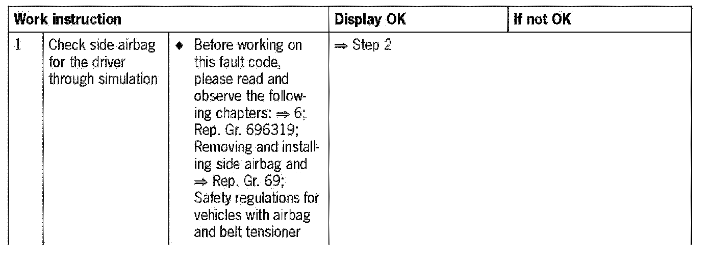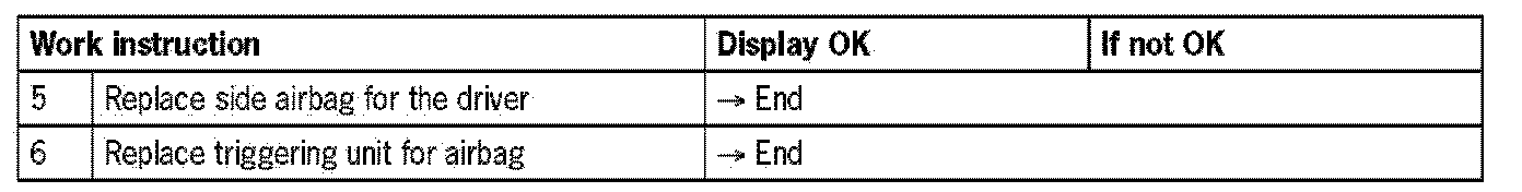 - Lower limit value not reached (based on the resistance value of the side airbag for the driver and the wiring between the airbag triggering unit and the side airbag for the driver)