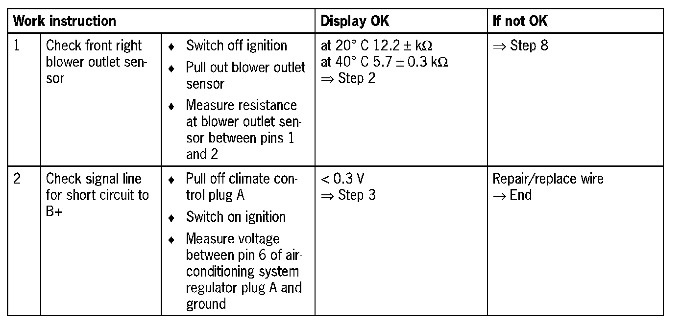 Fault code 1231Blower outlet sensor, front right footwell