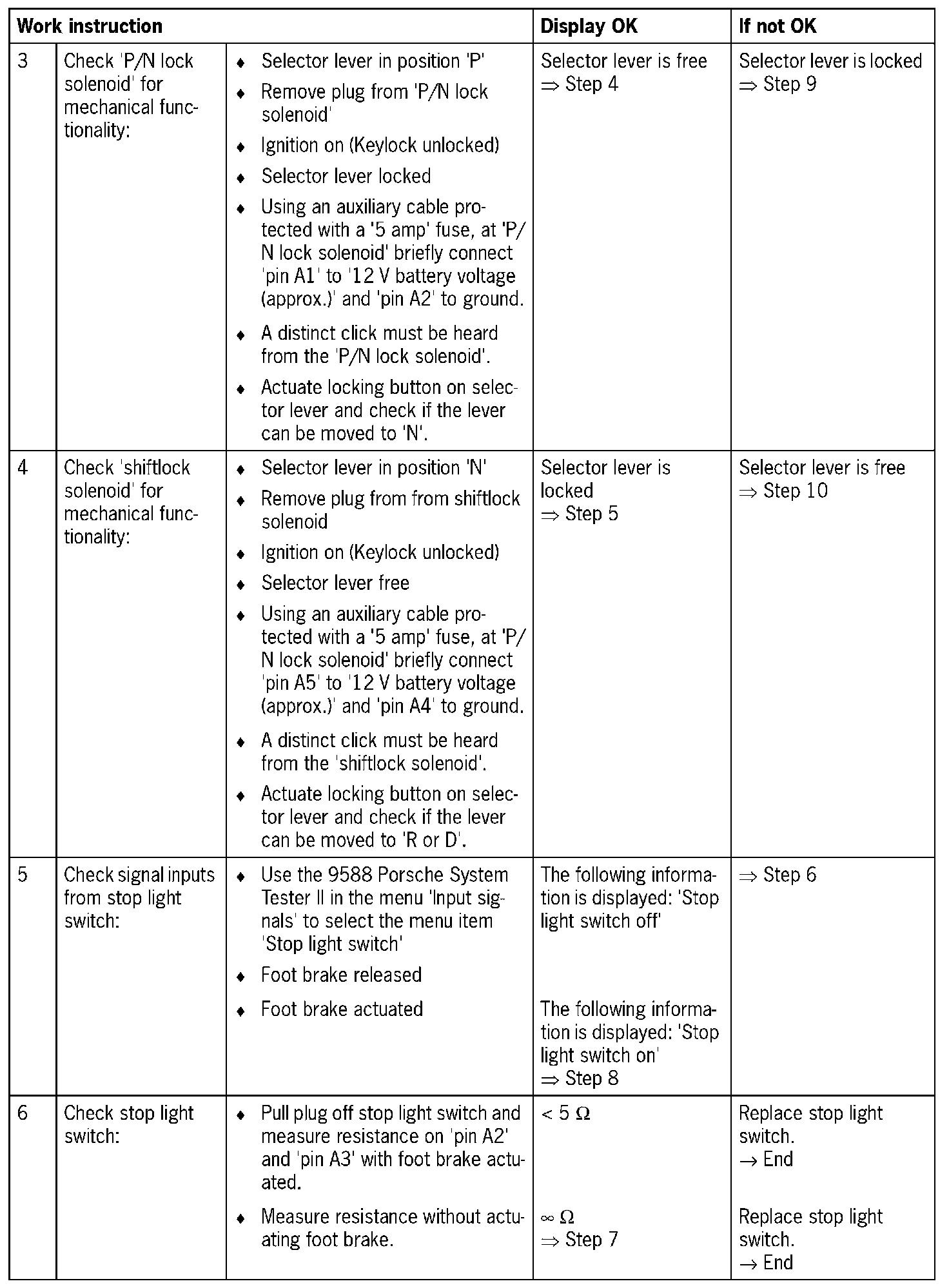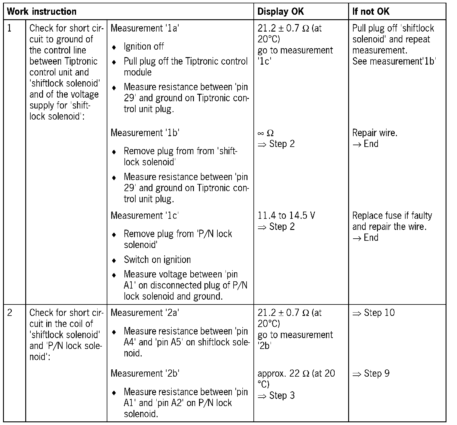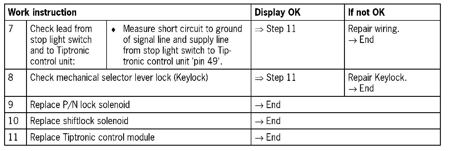 - 1. 'Open circuit/short circuit to B+': In the event of open circuit, shiftlock solenoid not activated