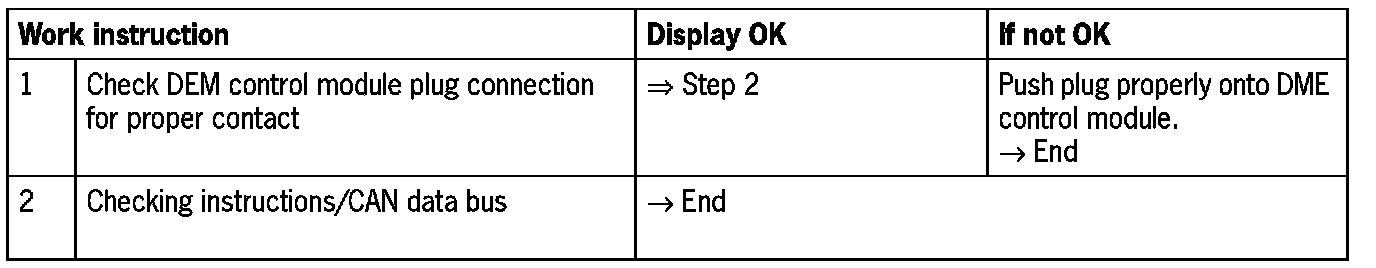 - 'No signal/communication': DME control module not connected or CAN drive faulty