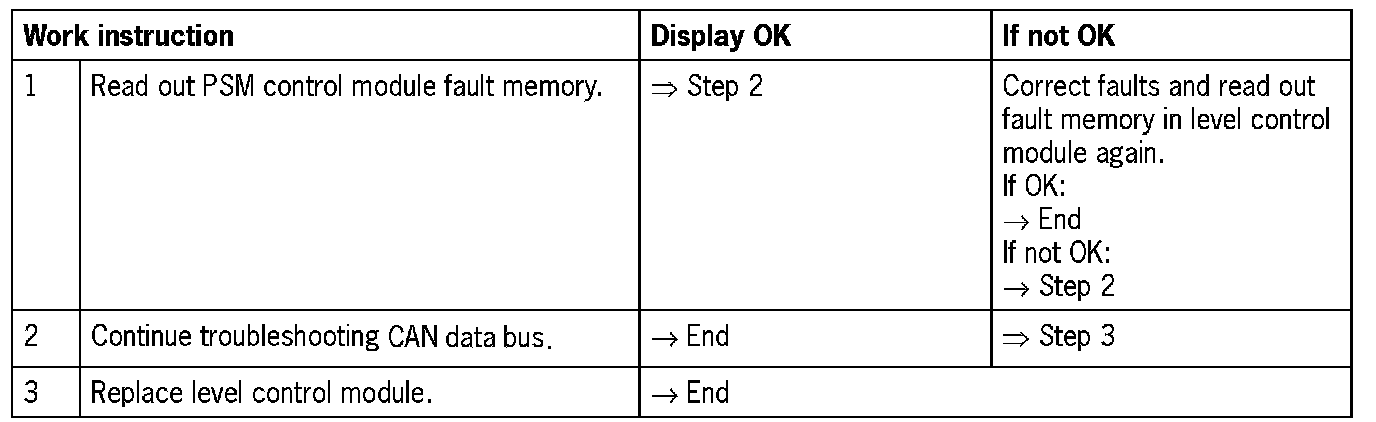 - Level control module could not establish a connection with the PSM control module (no signal/communication)