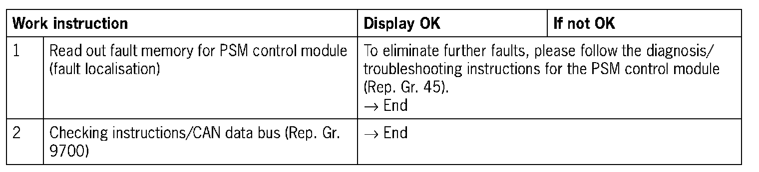 - To localise the fault, read out the fault memory for the 'PSM control module' (Please read out fault memory)