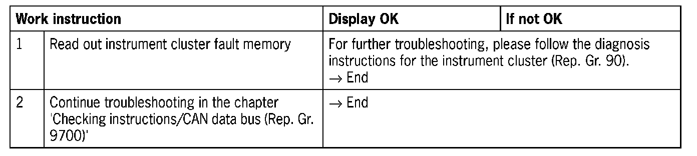 - No signal from the instrument cluster (no signal/communication)
