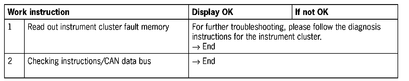 - Signal from instrument cluster does not correspond to expected signal (please read out fault memory).