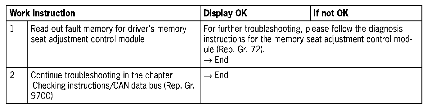 - No activation of the steering wheel heater (no signal/communication from the driver's memory seat adjustment control module)
