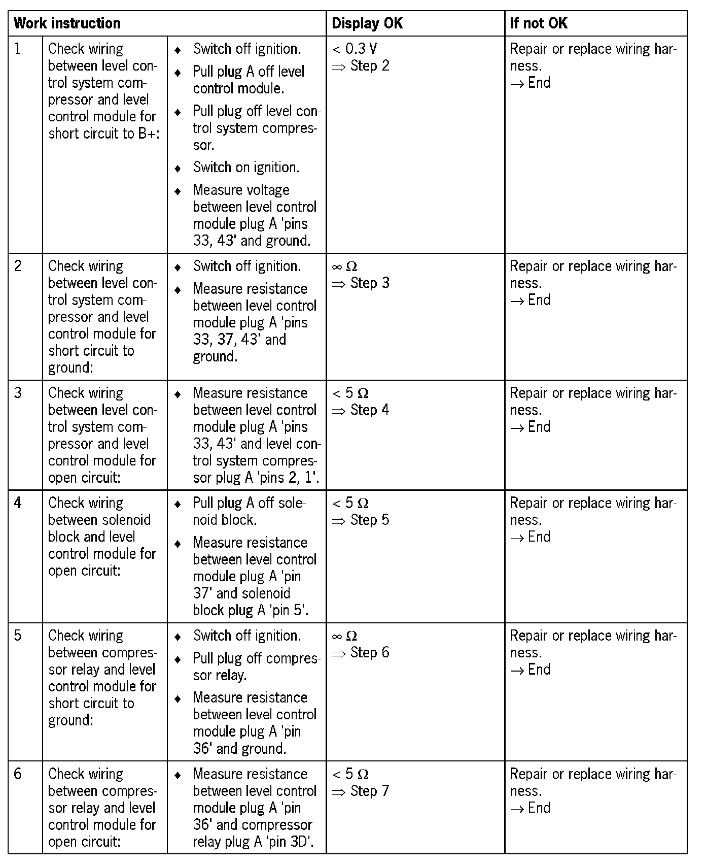 - Short circuit to ground or open circuit in the wiring of pin 33 of the level control module