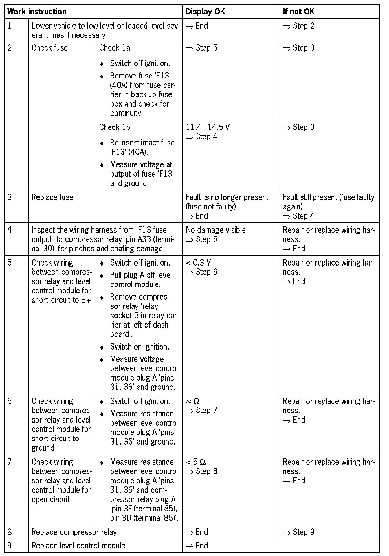 - Short circuit to ground or open circuit in the wiring of pin 31 of the level control module