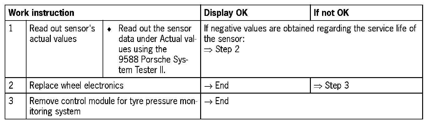 - It is advisable to read out the remaining life span of the wheel electronics (based on the battery capacity) using the 9588 Porsche System Tester II before changing a tyre. It is always advisable to replace the sensors if the expected remaining life span is shorter than that of the tyre.