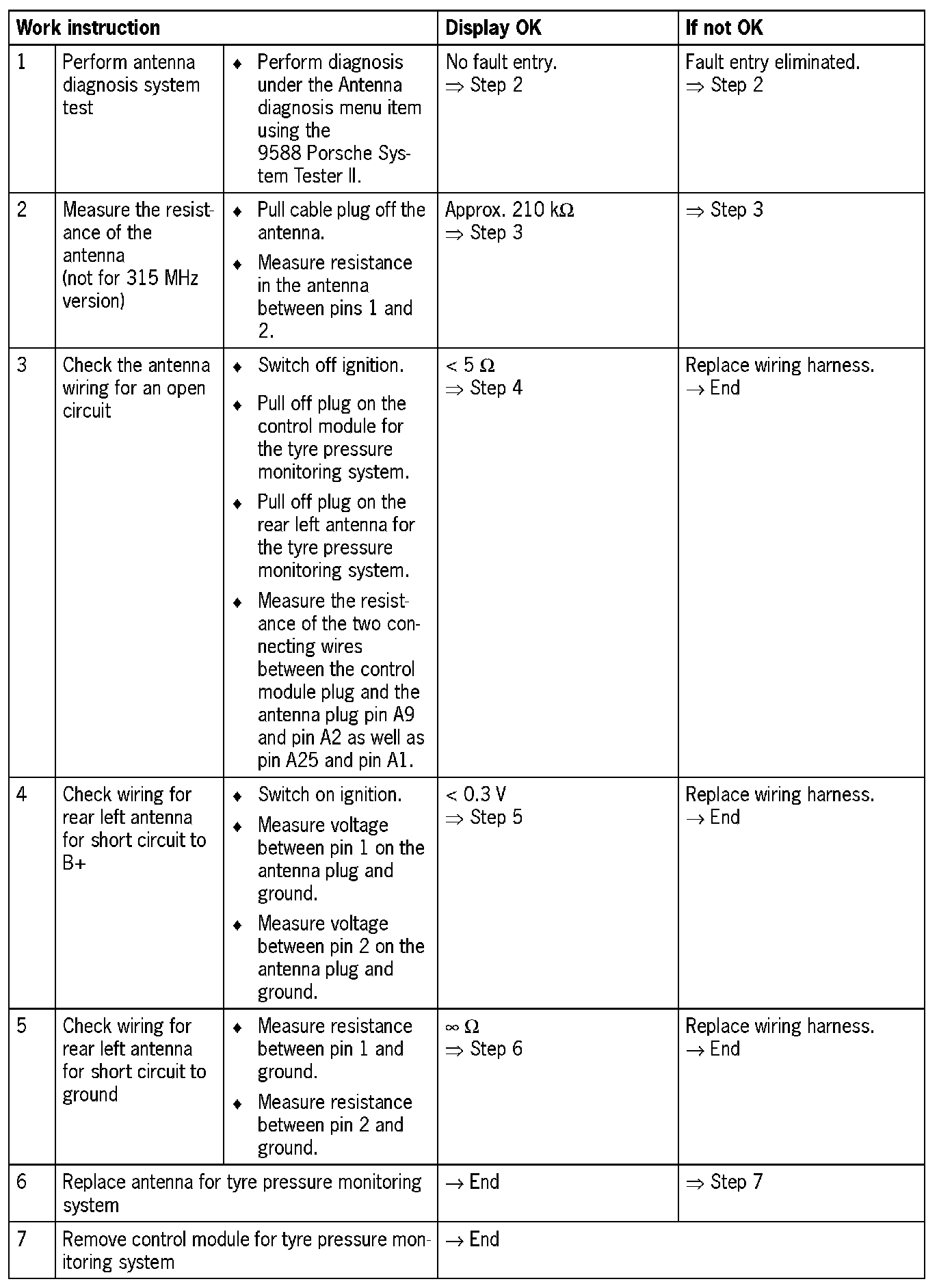 - Wiring for rear left antenna faulty (open circuit and/or short circuit)