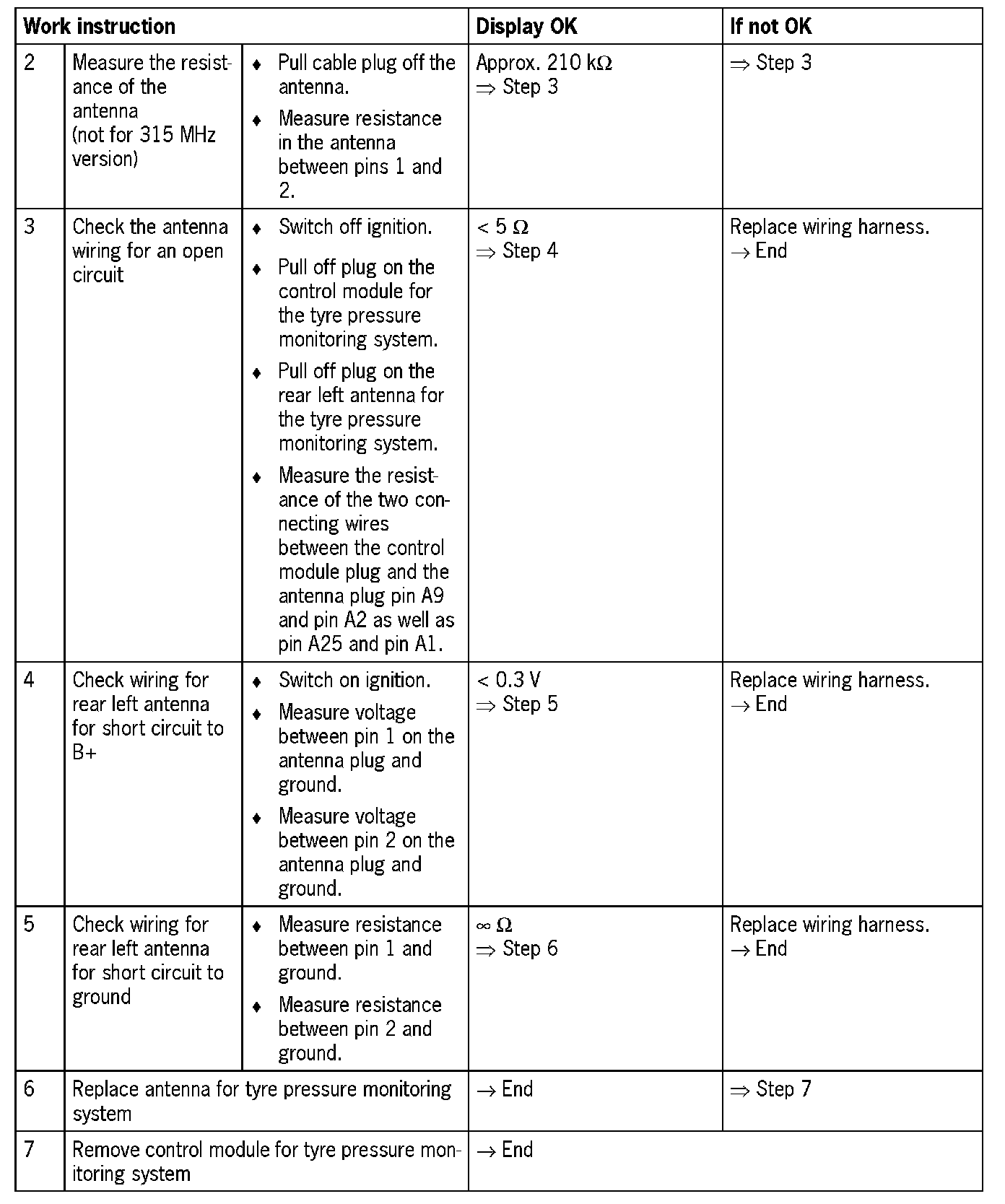 - Wiring for rear left antenna faulty (open circuit and/or short circuit)