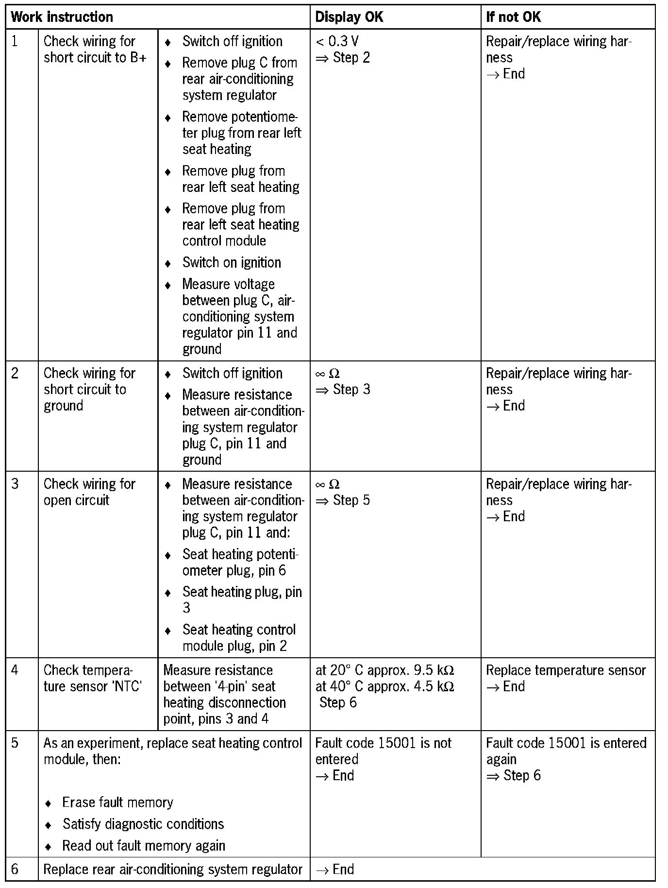 Fault code 15501Temperature sensor rear right seat heating