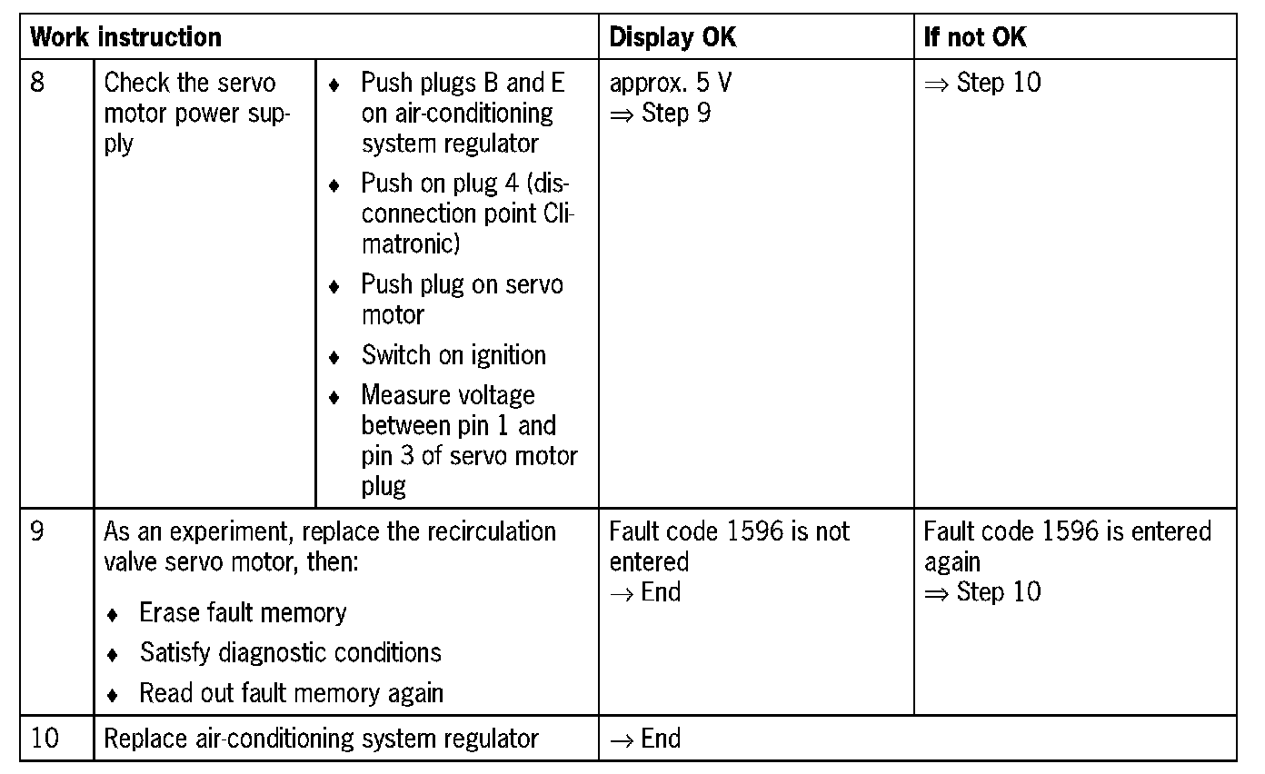 Fault code 1596Servo motor for fresh-air/recirculation valve